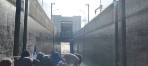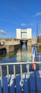 Le temps étant au beau fixe, les élèves ont pu monté sur le pont supérieur pour regarder et comprendre le paysage, ainsi que pour passer l’écluse, dans les deux sens.