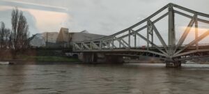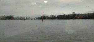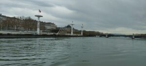 Vers 10h30, la péniche a quitté des quais pour se diriger vers l’écluse de Pierre-Bénite. La navigation vers Collonges-au-Mont-d’Or n’a pas été possible, car la Saône est en crue.