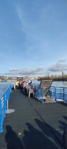 Ce lundi 1er décembre 2025, les CM1 des classes de Mme Gauvain et de M. Brunet n’avaient pas rendez-vous devant l’école, mais sur les quais du Rhône pour embarquer sur la péniche La Vorgine.